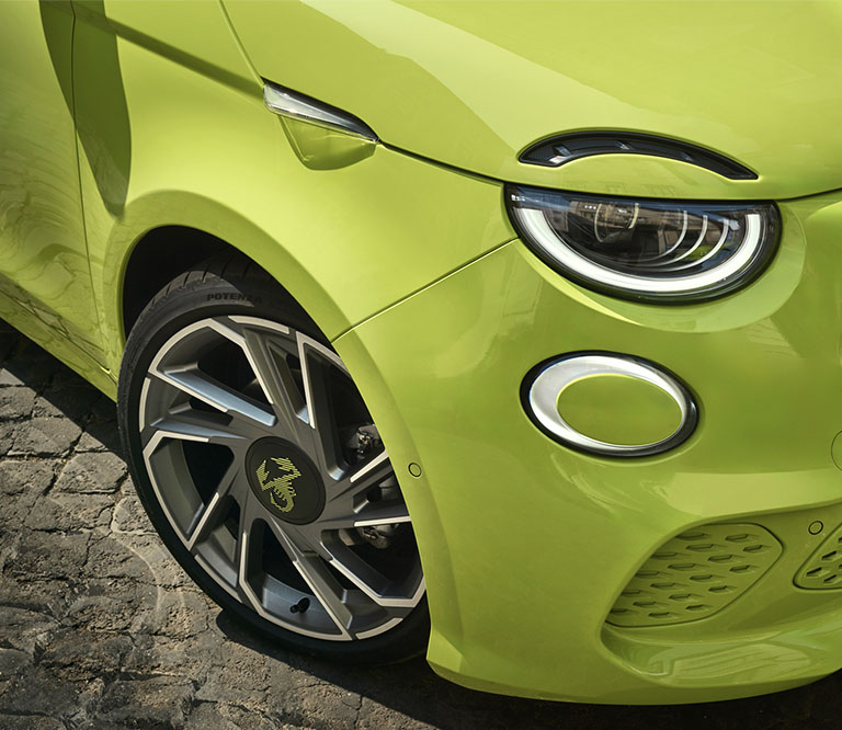 New Abarth 500e is equipped with the exclusive 18” Diamond-Cut Alloy Wheels, with strong performance and sharp design… they’re simply unmistakable.